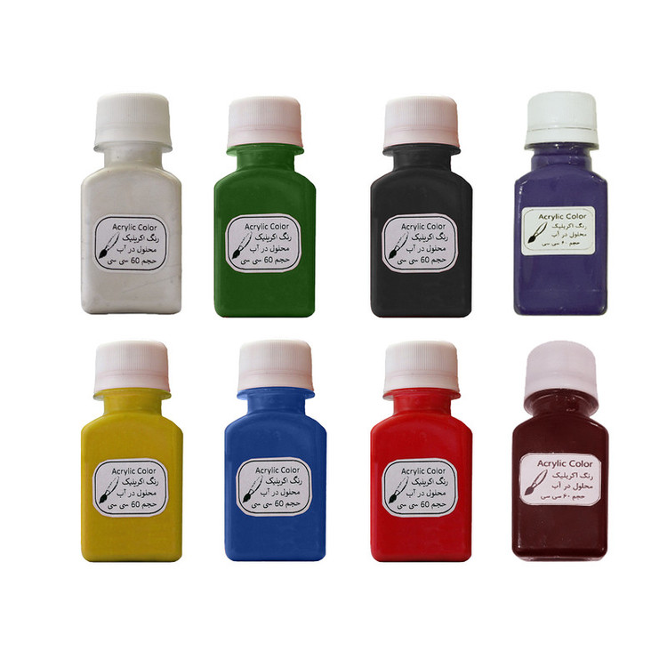 حجم هر رنگ 60 میلی لیتر رنگ های موجود: آبی - سبز - زرد - قرمز - سفید - قهوه ای - بنفش - مشکی