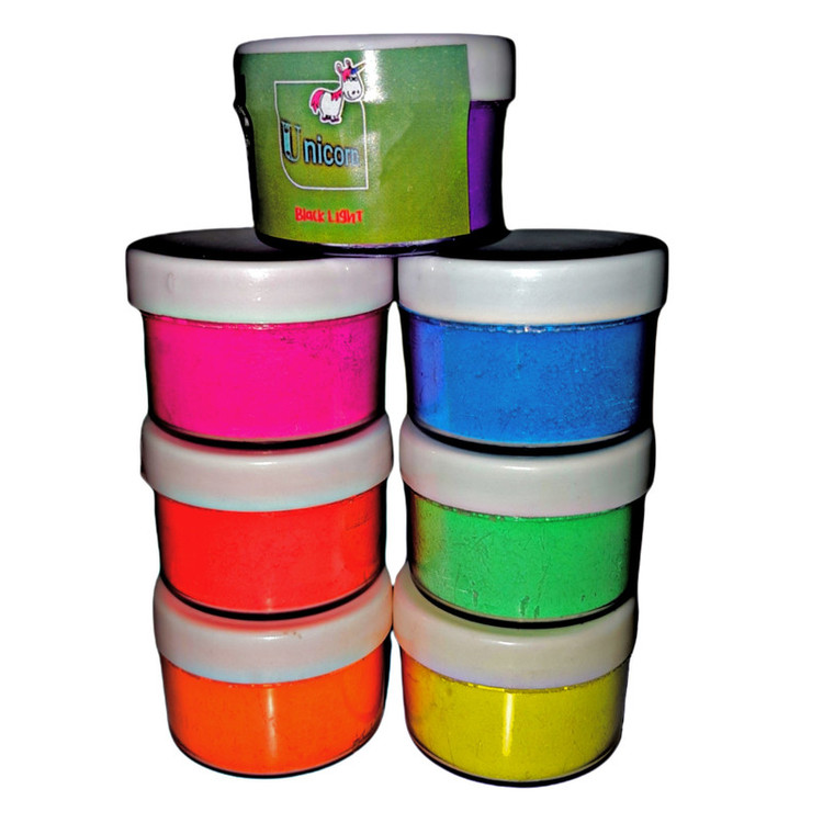 پودر رنگ یونیکورن بلک لایت از رنگدانه های بسیار ریز با تراکم بالا و قابلیت رنگ دهی عالی ساخته شده است.این محصول در صنعت شیشه سازی شمع سازی و رزین اپوکسی استفاده میشود.توجه داشته باشید رنگ های بلکلایت در زیر نور UV و نور آبی خود را نشان میدهند. محصولات یونیکورن در قوطی های پور و بصرفه ارزه می شوند.