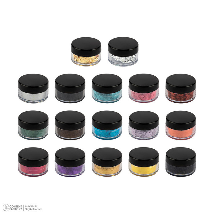 رنگ پودری صدفی سوپر شاین مجموعه 17 عددی به همراه ورق طلا و نقره