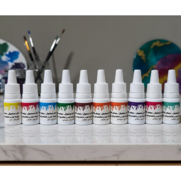 رنگ جوهری رزین، جوهر ترنسپرنت اپوکسی، رنگ اپوکسی شفاف، جوهر رزینی 10 میلیلیتر، پک 10 تایی رنگ رزین