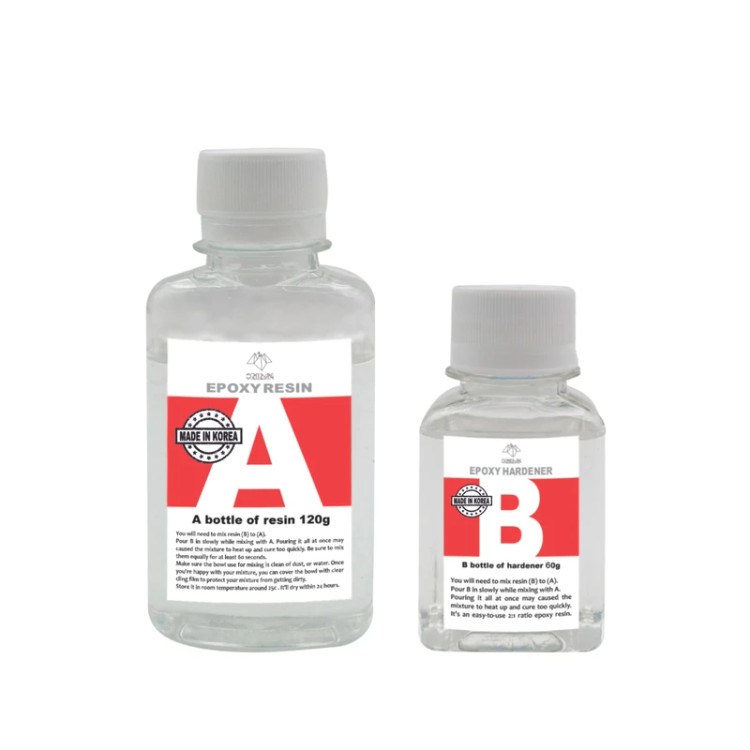 رزین اپوکسی از خانواده رزینهای دو جزیی است که شامل “پایه ی رزینی” و “هاردنر” میباشد. این دو جزء باید به نسبت مشخصی که بنا به فرمولاسیون و کاربرد آن متفاوت است با یکدیگر مخلوط شده و سپس روی سطح یا قالب مورد نظر ریخته شود. محصول حاضر ساخت کشور کره بوده که بسیار با کیفیت و شفاف بوده و پس از خشک شدن زرد نمی شود.نسبت ترکیب کردن این محصول 2 به 1 است. کاربردها: مقاومت دهی به چوب و بستن منافذ آن ساخت میزهای رودخانه ای و تایل های دکوراتیو ساخت گردنبد و دستنبد با کمک رزین اپوکسی ...